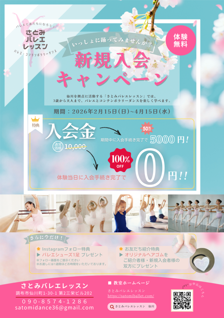 さとみバレエレッスンでは 春の入会キャンペーン を実施いたします。
