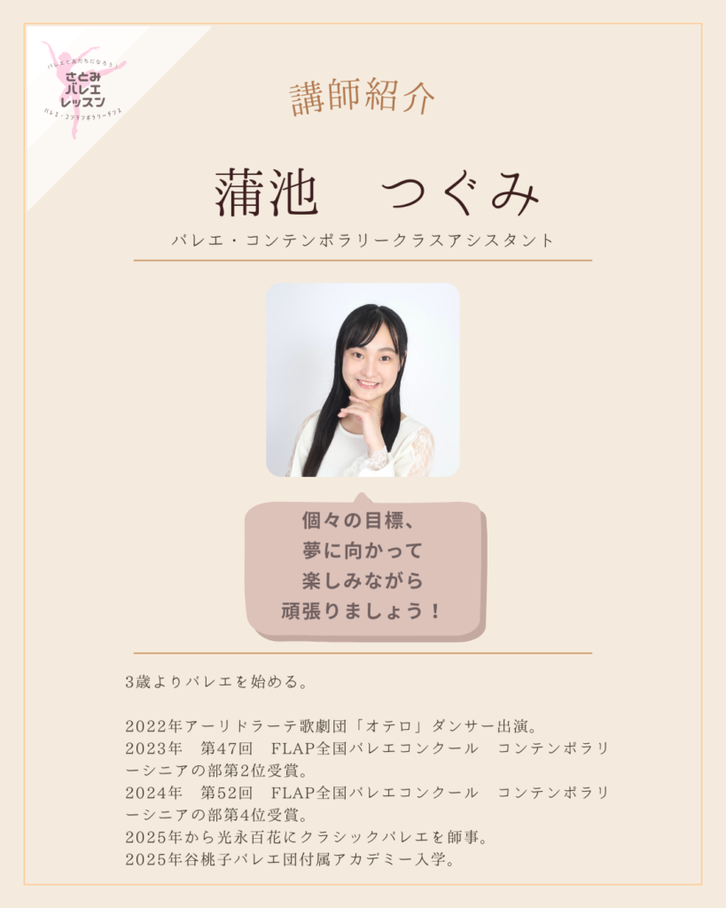 バレエを楽しみながら生徒の皆様に寄り添えるよう精一杯頑張ります!