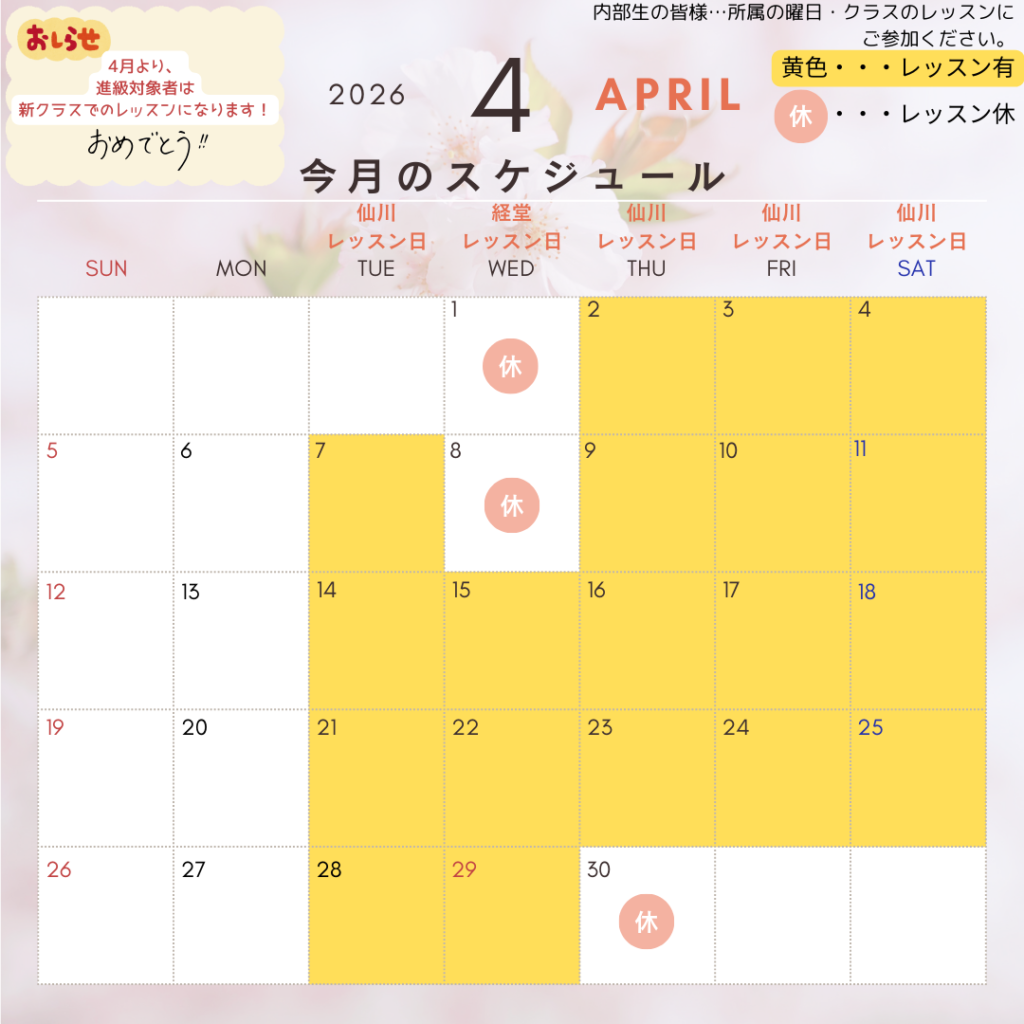 2026年4月のレッスンスケジュール
